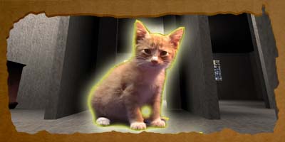 path is blocked by a large, cute, glowing nuclear kitten. Inventory: Trombone grease, lint