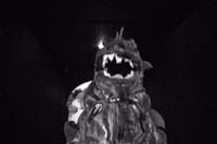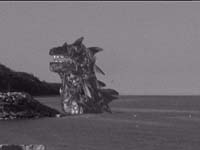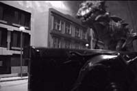 We set pretty strict rules as to what we could do, so the LOD stayed true to its "source". Though the movie was filmed with a DV camera and edited with Adobe Premiere, we used a plug-in called "Film FX" to make the footage run at 24 FPS (like film) and de-interlace it, adding film grain, scratches and other crappi-fications. The camera had a B&W setting, so at no point was the movie ever in color. For the FX, we mostly used models, but we did a few composites. However, I only allowed myself to use luminance mattes and splits. A luminance matte is seen above with the Lizard in the tunnel. You light something, usually a model, then film it against a black background. After you process it, the black becomes "transparent" allowing a different background through. Thing is, anything dark or black on your object becomes transparent too. This is why the "50 Foot Woman" is transparent in some scenes, and why you can see stars through Flash Gordon / Rocky Jones' rocket ships. The other composite effect I allow were splits. A line is basically "cut" and one footage runs on one side, something else on the other. These were seen a lot in films like "Earth vs the Spider" and "Attack of the Colossal Beast" I only had about 4 of these in LOD because they didn't look crappy ENOUGH. Though these effects were done digitally using Premiere, the effects themselves (and their crummy results) were consistent to what was available in the 50's. (Note: Luminance mattes do work well with things that are ALREADY semi-transparent, like when filming flames, smoke or water) The following March "Lizard of Death" was shown at the 2001 Wisconsin Film Festival in Madison. (The best part was that they allow beer in the theatre) If you have any other questions about "Lizard of Death", or would like to inquire about getting yourself a copy, feel free to email me! Where to? |