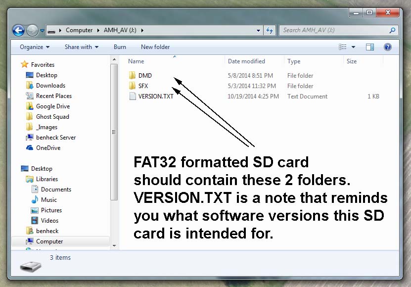 - Copy the contents of the AMH_SD.zip file to your now-blank SD card. The resulting folder should look like this.
