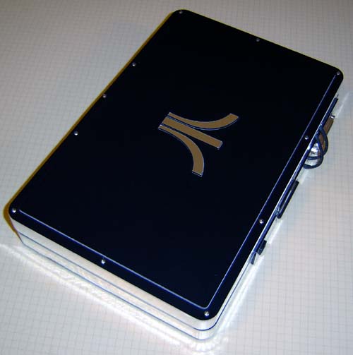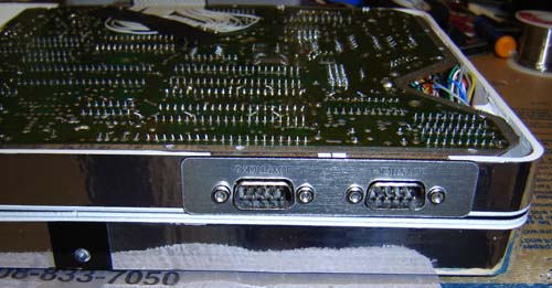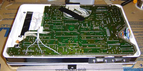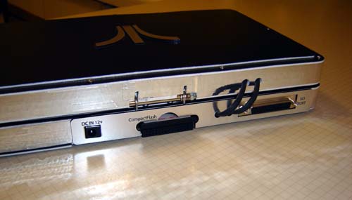 The back of the unit. We see the wires between the halves, the CompactFlash slot, power slot and the DB25 used as an thin SIO port.