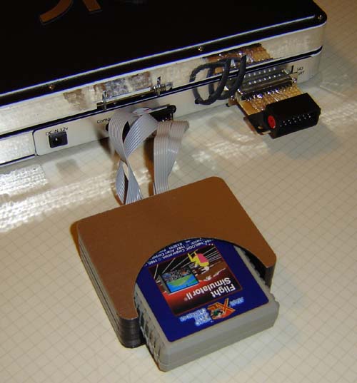 The cartridge breakout box plugs in below the CompactFlash slot. Also shown is the SIO adapter attached, so you can use the SIO2PC cable or a real disk drive if you have one of the 3 working ones left.