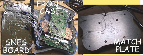 Here are the 3 main parts of the SNESp. The main board, the front half, and the match plate. The match plate also contains the battery holder (not seen). These 3 items are then combined…