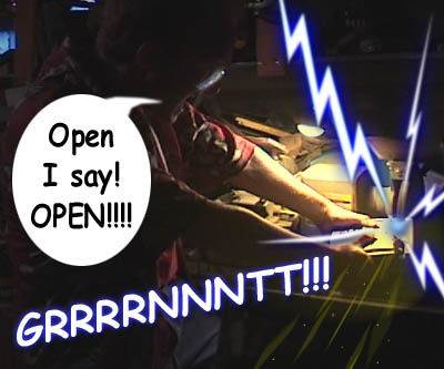 “I can see the beams in the dust! I’ll be able to thwart them easily now! Proceeding into shop…”