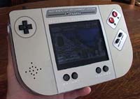 NES Portable, Hand-built Build a portable NES system with a 5" TFT display, built-in battery pack and cartridges that slide down the back like a Gameboy Advance. This project can be constructed by hand using printed templates and hobby materials. You'll also need a soldering iron, X-Acto knife, wire, screwdrivers and other common tools. |