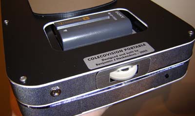 Spinner wheel and Sony Infolithium battery. There’s also an auxiliary power input (lower left) that I made to use a Sony PS1 screen wall power supply. It’s the same voltage as the battery, +7.5 Very faintly to the right you can see the small “Reset” switch you can hit should Donkey Kong give you a hard time.
