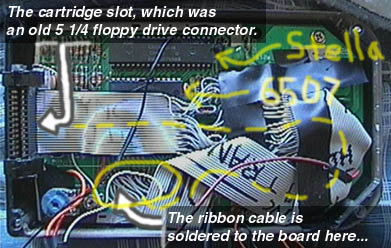A power wire of some sort had to be jumped because of this amputation. Also, the RESET and SELECT switches had to re-wired, since they (originally) were on the section that was hacked off. However, they were simple! Each switch, RESET and SELECT, used a pin off the RIOT chip, and went to ground. YAWN!