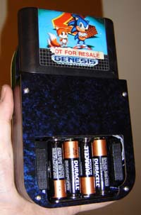 The back of the thing with the battery cover off. As with the NOAC NES portable I made, this takes only 4 AA’s and only draws about 360mA total. This is due in fact to the Genesis part only drawing 60mA and the TV using a white LED mod (instead of the bulb it came with)