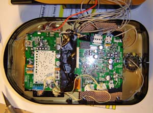 Here’s the front of the unit a little closer-up. As you can see, only about 10 wires go from the back of the unit to the front. It’s a fairly simple system, aside from all the minute wiring on the Genesis board itself.
