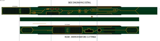 For this unit I decided to “skin” the sides with some thin engraving plastic material. This would give an overall shiny appearance and allow much finer detail on the sides of the unit, specifically all the hexagon-shaped air holes. I also had to work in an Xbox Live Vision camera, which the customer requested.