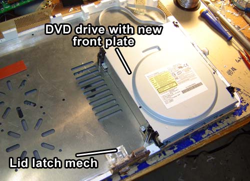 An Xbox case sitting behind the laptop for depth reference purposes. You can also see the lid latch open button, disc eject, IR sensor and the small controller sync button. My usual goal with projects like this is to make the finished product no thicker than the original console, even though an LCD and screen lid has been added. The PS3 laptop will follow this tradition, mostly because the PS3 is pretty damn thick to begin with and there’s nowhere to go but thinner 😉