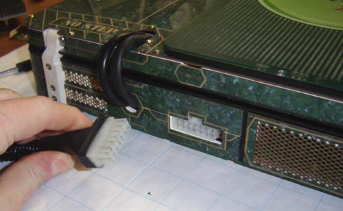 For an even snarkiner power-piggyback I grabbed 5 volts for the smaller heatsink fans from the 5 volt TOSlink line on the A/V cable. There are a lot more 5 volt sources available, mainly the USB, but these stay powered even if the system is off so I needed a 5 volt source that only turned on with the main system.